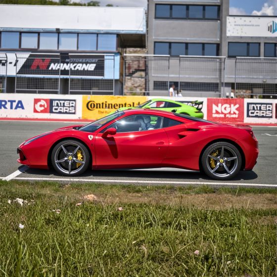 Ferrari 488 GTB je ustvarjen za hitro vožnjo in prav na dirkališču pridejo do izraza njegove vrhunske lastnosti. 3,9-litrski V8 biturbo motor s 670 konjskimi močmi zagotavlja silovito pospeševanje, izjemno odzivnost in stabilnost tudi pri višjih hitrostih. Zvok motorja, ko se vrtljaji dvignejo, ustvari edinstveno dirkaško atmosfero, ki jo je nemogoče opisati – treba jo je doživeti.